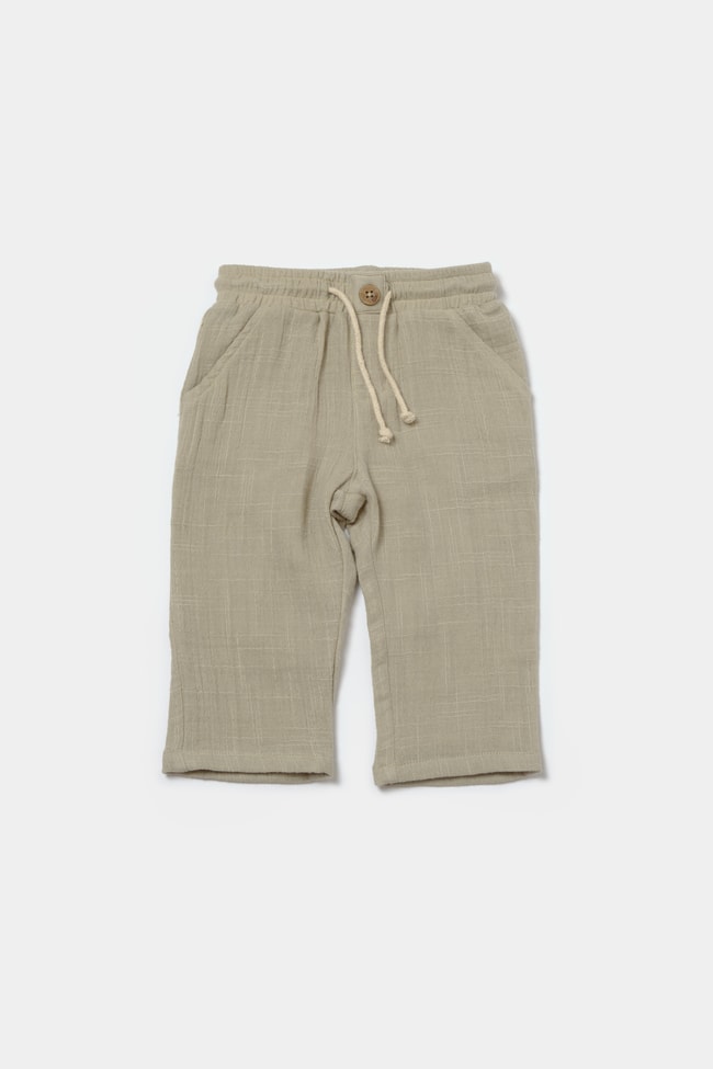 Bebeğinizin hassas cildi için özel olarak tasarlanan bu iki parçalı pamuklu müslin takım, doğal ve nefes alabilen yapısıyla gün boyu konfor sunar. Düğmeli üst, çapraz kesimiyle giydirme kolaylığı sağlarken, göğüs kısmındaki sevimli kuzu nakışı sıcak bir detay kazandırır. Esnek beliyle rahatlık sunan pantolon, hareket özgürlüğü sağlar. Organik pamuk içerikli müslin dokusu sayesinde dört mevsim kullanılabilir. Zarif ve sade görünümüyle evde ya da dışarıda tercih edebileceğiniz ideal bir bebek takımıdır.