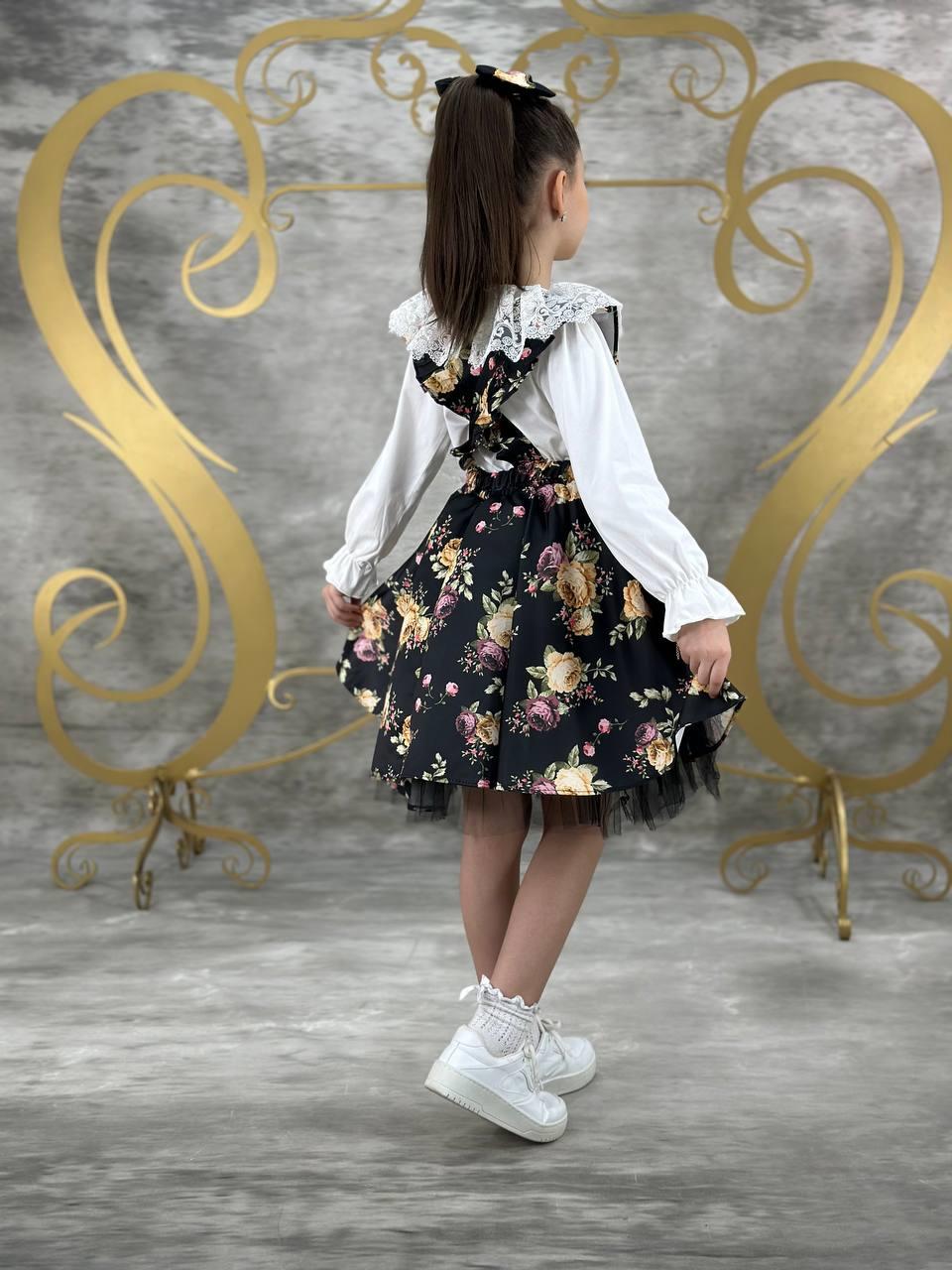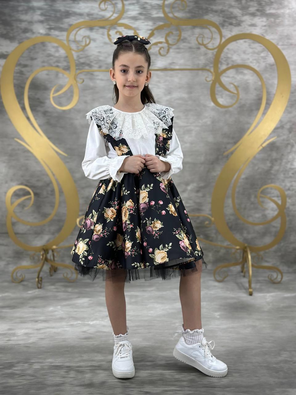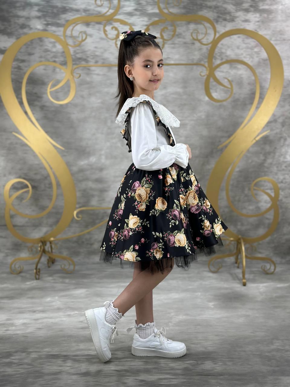 Bu özel tasarım çiçek desenli salopet elbise, zarif ve enerjik detaylarıyla göz alıcı bir stil sunar. Elbisenin yumuşak kumaşı, çocuğunuzun cildine dosttur ve gün boyu konfor sağlar. Kombin tamamlayıcısı olan fırfırlı badi, sevimli bir görünüm kazandırırken hareket özgürlüğü sunar.