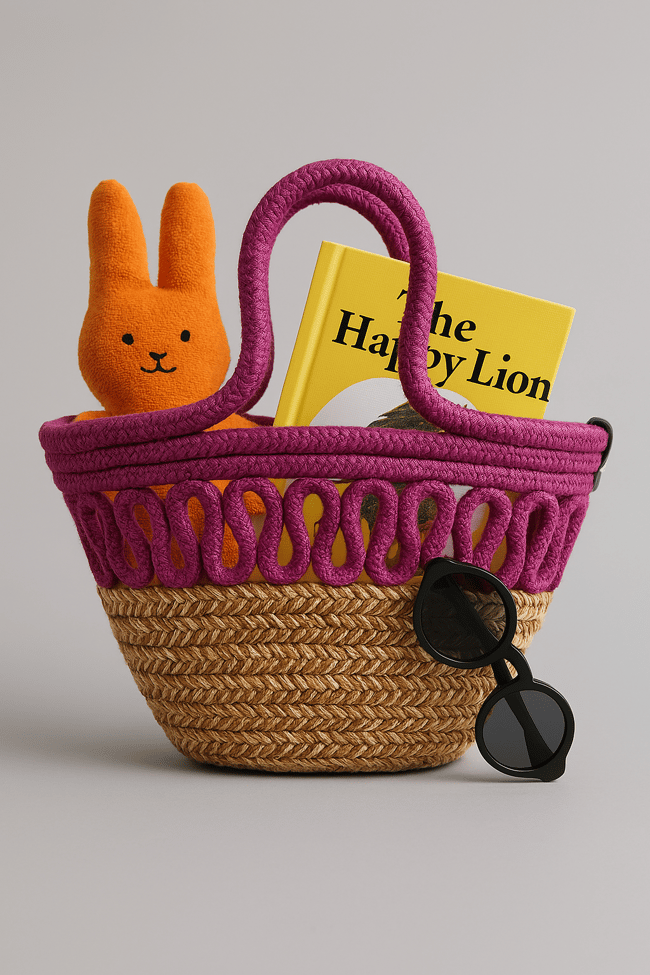 Yaz aylarının vazgeçilmez aksesuarı olan bu çocuk plaj çantası, hem fonksiyonel hem de eğlenceli tasarımıyla öne çıkıyor. Doğal hasır örgüden üretilmiş çanta, 27 cm genişliği ve 15 cm yüksekliği ile çocukların tüm yazlık ihtiyaçlarını kolayca taşıyabileceği şekilde tasarlandı. İçine oyuncak, kitap, güneş gözlüğü gibi birçok eşyayı yerleştirebilirsiniz.