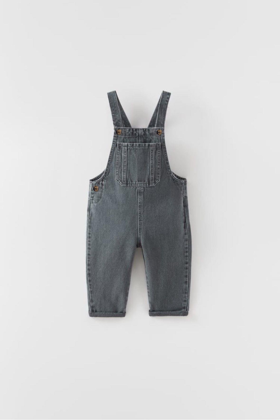 Düz yaka ve askılı, cepli kot salopet. Ayarlanabilir askılar ve dayanıklı kumaş.