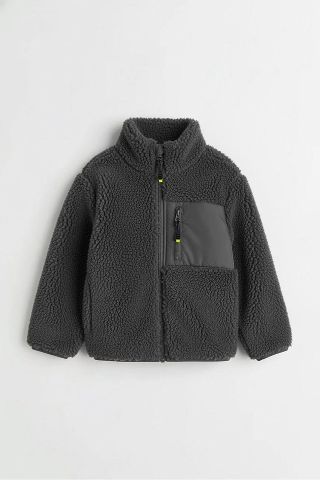 Erkek Çocuk Pamuklu Antrasit Polar Mont – Fermuarlı Cepli Peluş Görünümlü