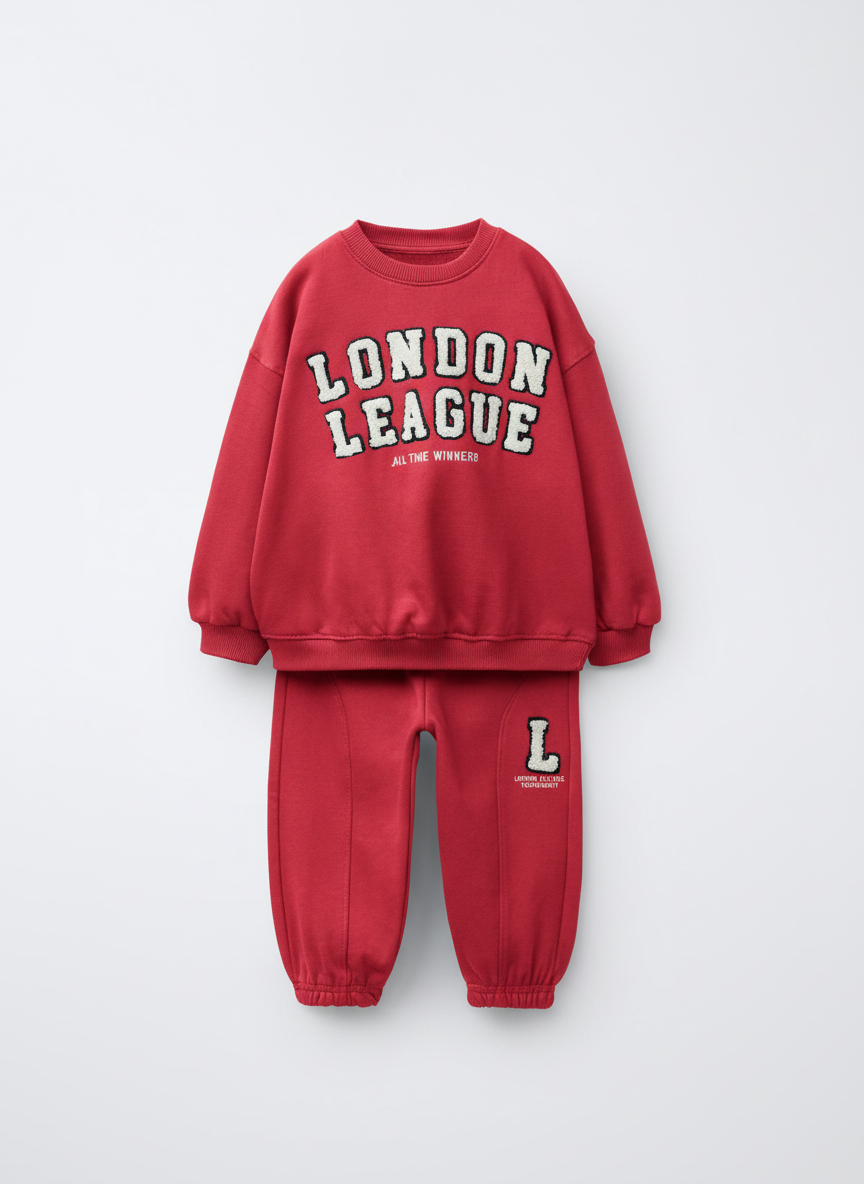 Erkek çocuklar için özel olarak tasarlanan pamuklu kırmızı takım, şıklığı ve rahatlığı bir araya getiriyor. Üst parçasında yer alan “London League” nakışlı yazı detayı modern bir stil sunarken, bisiklet yaka ve uzun kollu sweatshirt günlük kullanım için idealdir. Alt parçası elastik bel ve paça yapısı sayesinde çocuğunuzun gün boyu rahat hareket etmesini sağlar.