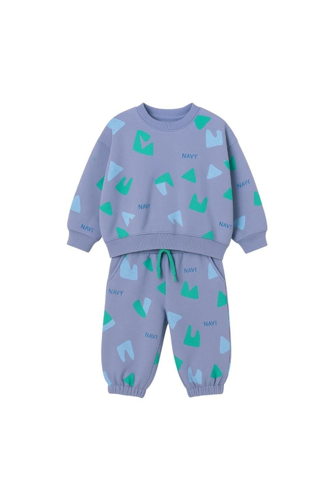 Erkek çocuklar için hazırlanan bu pamuklu eşofman takımı, modern tasarımı ve rahat kalıbıyla öne çıkıyor. Üst parçası bisiklet yaka, uzun kollu sweatshirt formunda olup, yeşil ve turkuaz NAVI desenleriyle enerjik bir tarz sunuyor. Alt parçası ise elastik bel ve lastikli paça detayıyla çocuğunuzun gün boyu özgürce hareket etmesini sağlar.