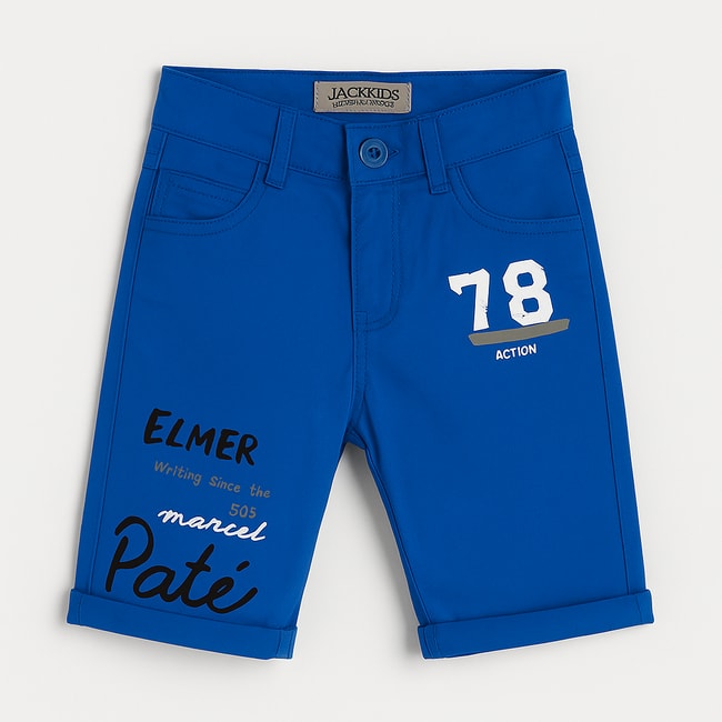 Modern detaylarla tasarlanmış pamuklu erkek çocuk şortu. Renkli baskılar, konforlu kalıp ve zarif kıvrılmış paça detayı ile enerjik bir görünüm sunar.