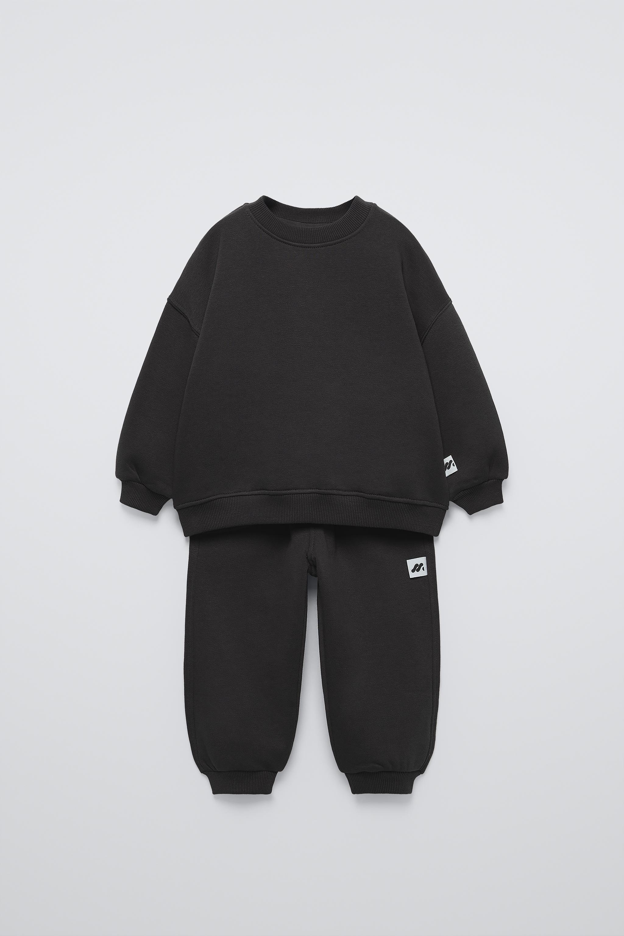 Erkek çocuklar için tasarlanan pamuklu siyah sweatshirt ve eşofman alt takım, hem günlük kullanım hem de sportif aktiviteler için mükemmel bir tercihtir. Yumuşak pamuklu kumaşı sayesinde gün boyu konfor sağlarken, rahat kalıbı çocuğun hareket özgürlüğünü destekler. Sweatshirt bisiklet yaka ve uzun kollu tasarımıyla klasik bir görünüm sunarken, üzerinde yer alan etiket detayı modern bir stil katar. Eşofman altı elastik beli ve lastikli paça yapısıyla pratik bir kullanım imkânı sunar.