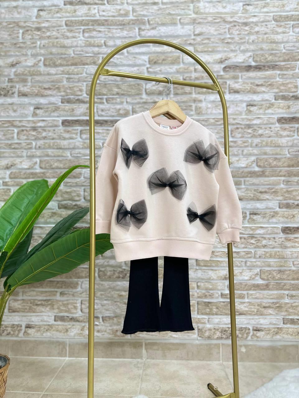 Fiyonk Desenli Pamuklu Sweatshirt Tayt Set Alt-Üst Takım Kız Çocuk
