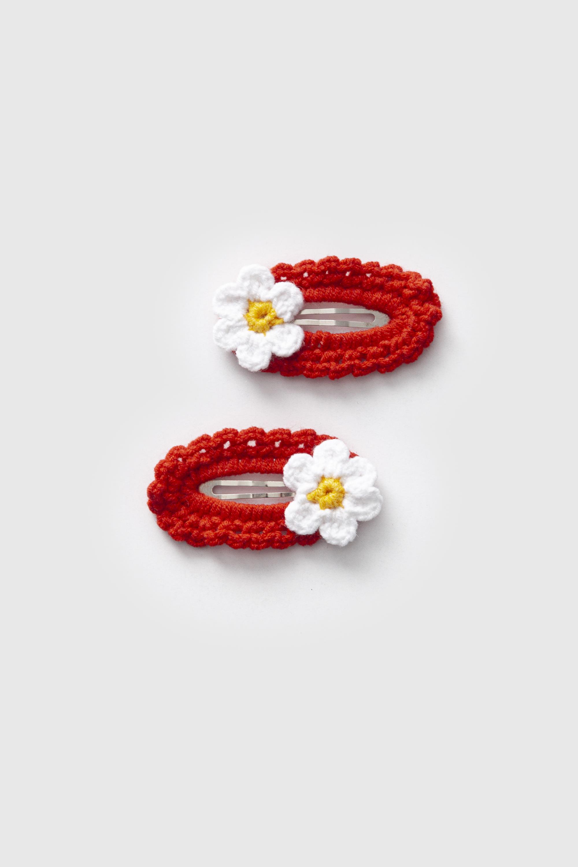 Kırmızı Örgü Çiçek 2'li Toka Set
