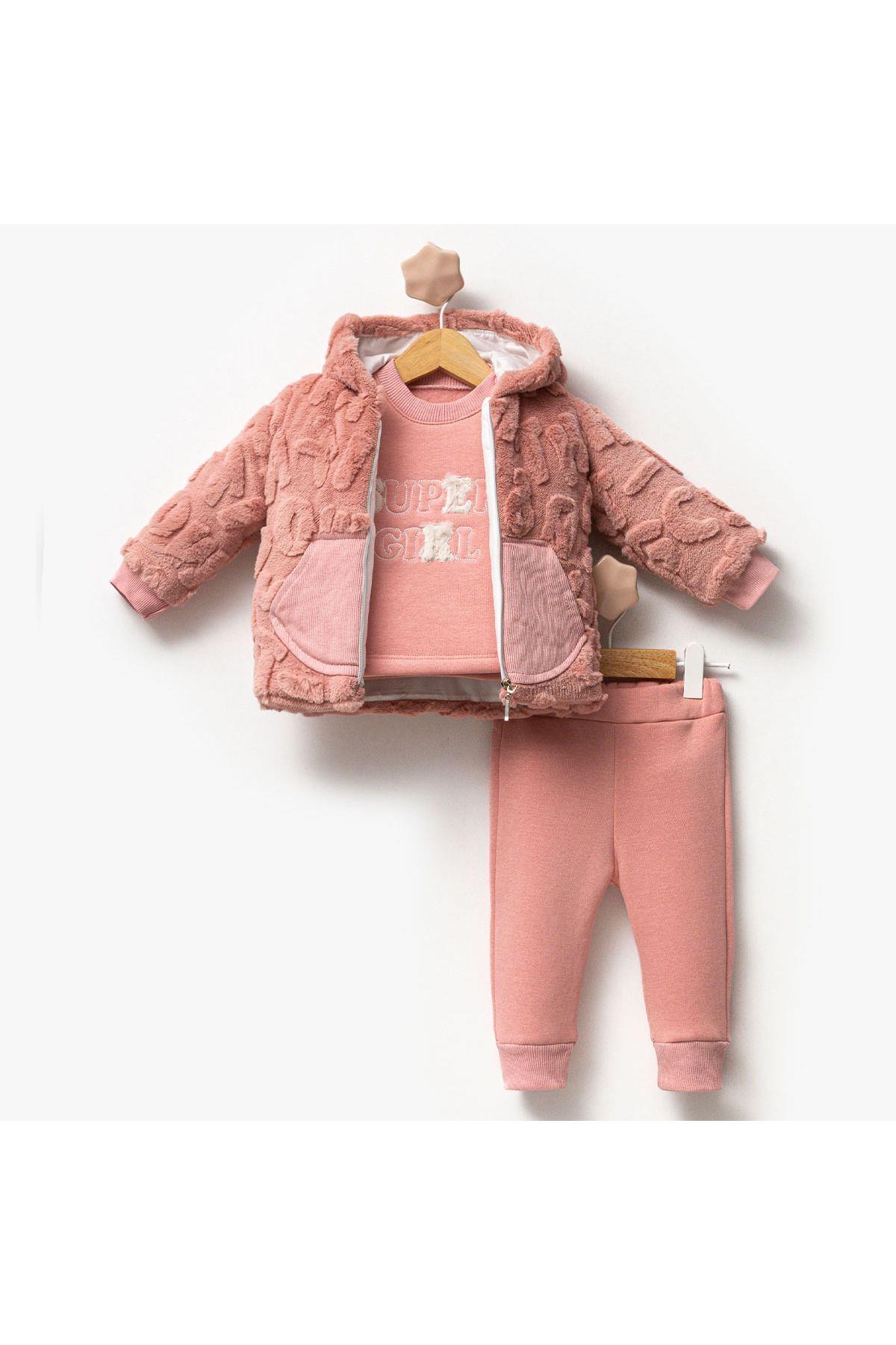 Kız Bebek Pamuklu Sweatshirt Ceket Alt-Üst Takım