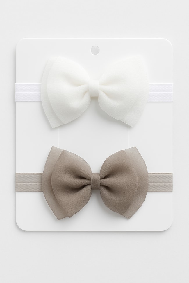 Kız Bebek Yumuşak Doku 2'li Organze Fiyonk Bandana Seti