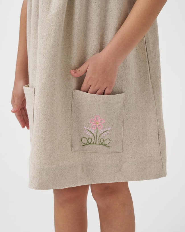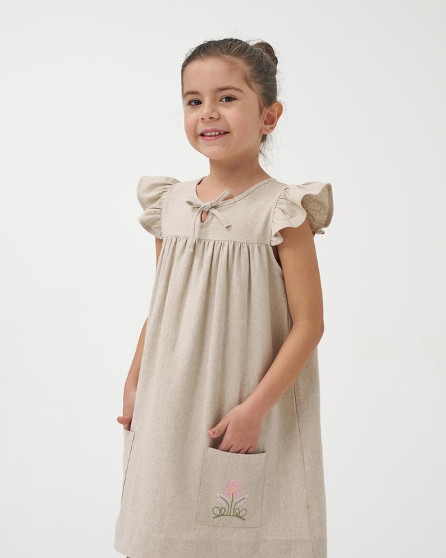 Doğallığın ve sadeliğin zarafetle buluştuğu bu kız çocuk elbise, %100 keten kumaşı ile yaz aylarının konforlu favorisi olmaya aday. Hafif ve nefes alabilir yapısıyla çocukların hassas cildi için idealdir, sıcak havalarda serin ve kuru kalmalarına yardımcı olur.