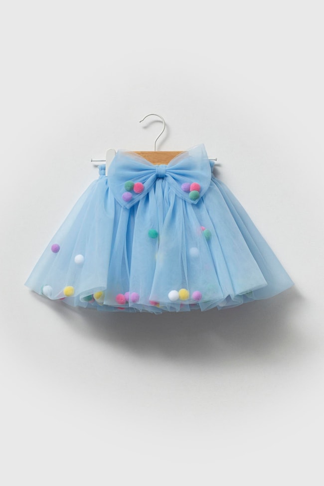 Renkli ponpon detayları ve zarif tül yapısıyla öne çıkan bu kız çocuk eteği, özel günler ve eğlenceli anlar için mükemmel bir seçim sunar. Kat kat tül tasarımı, eteğe dolgun ve uçuşan bir görünüm kazandırırken, iç kısmına serpiştirilmiş renkli ponponlar hareket ettikçe eğlenceli bir dinamizm yaratır. Arkasında yer alan büyük fiyonk detayı ise eteğe hem romantik hem gösterişli bir dokunuş katar. Yumuşak astarı sayesinde cilde dosttur; esnek bel yapısıyla da kolayca giyilir. Doğum günü, fotoğraf çekimi, okul gösterisi veya partilerde kullanılabileceği gibi günlük stilin enerjik tamamlayıcısı da olabilir. Hediye alternatifi olarak da öne çıkan bu etek, gardırobun favori parçalarından biri olacak.
