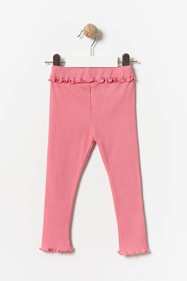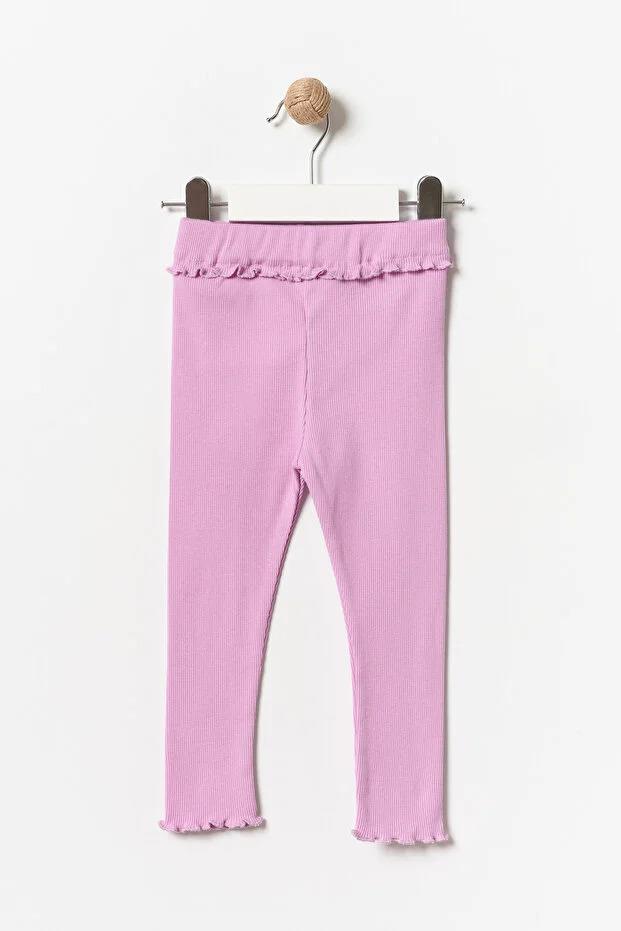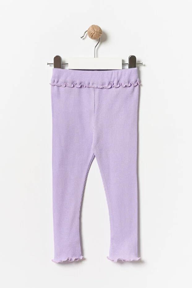 Üç parçalı pamuklu ribana tayt seti. Esnek bel lastiği, fırfır detaylı paça ucu tasarımıyla konforlu ve şık. Günlük kullanıma uygun.
