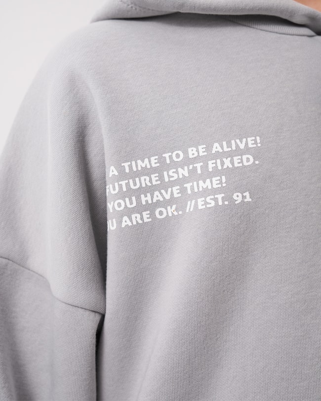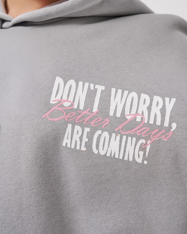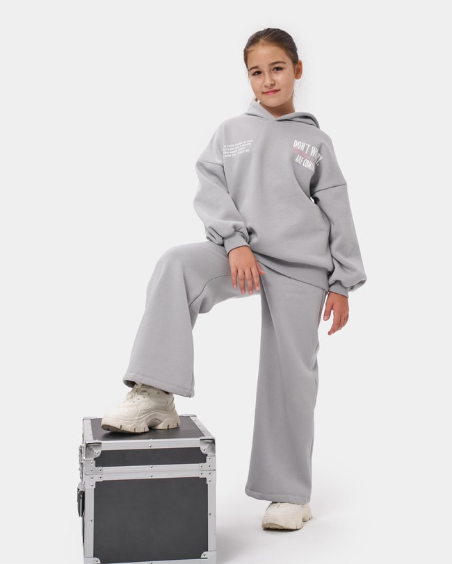 Minimal tarzı seven kız çocukları için tasarlanan bu gri pamuklu takım, rahat kesimi ve modern görünümüyle öne çıkar. Kapüşonlu sweatshirt üzerinde yer alan “Don’t Worry, Better Days Are Coming” yazı baskısı, motive edici enerjisiyle günün her anına pozitif bir dokunuş katar.