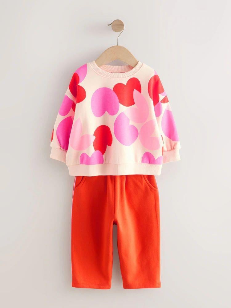 Kız Çocuk Pamuklu Kalp Desenli Sweatshirt ve Kırmızı Eşofman Takım
