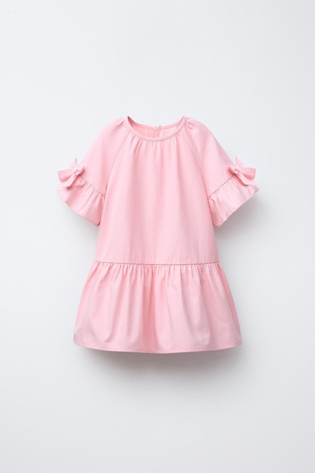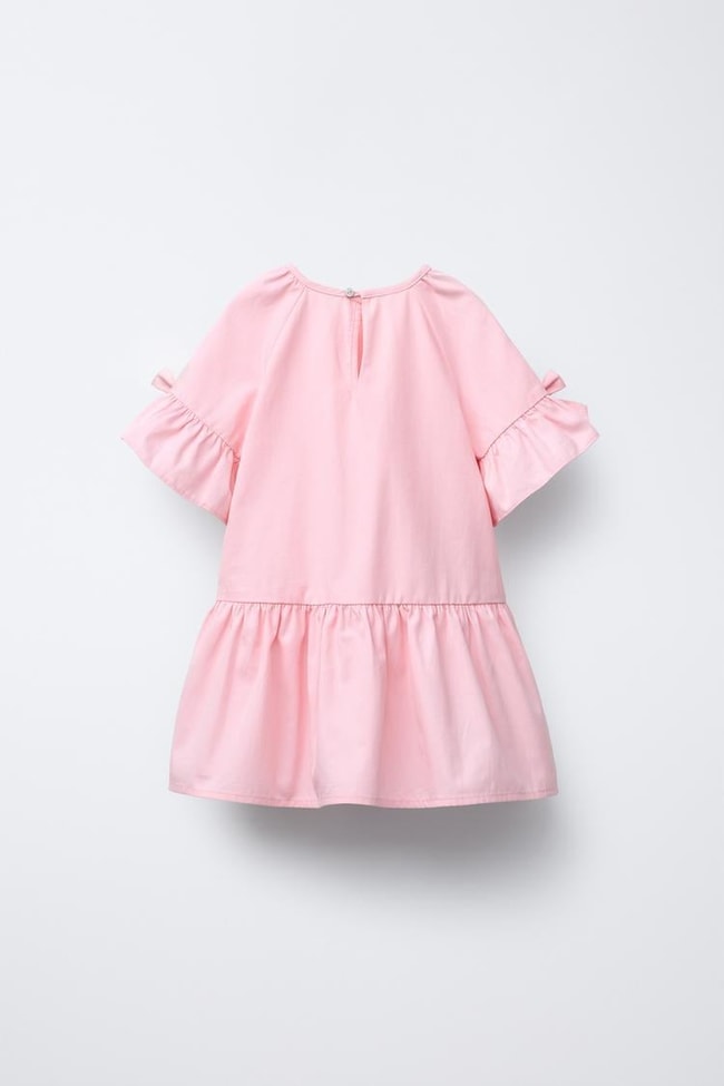 Yumuşak pamuk kumaştan üretilmiş bu pembe kız çocuk elbisesi, yaz aylarında rahatlık ve şıklığı bir arada sunar. Kısa kollu tasarımı, volan detaylarıyla hareketlenirken, kollarda yer alan fiyonk süslemeleri elbiseye sevimli bir dokunuş katar. Bisiklet yaka kesimi ile giyimi kolaylaştıran model, hem günlük kullanım hem özel gün kombinleri için idealdir. Nefes alabilen kumaşı sayesinde çocukların cildine dosttur ve gün boyu konfor sağlar. Tatil valizlerinin ve yaz gardıroplarının favorisi olmaya aday bu model, stil sahibi miniklere hitap eder.