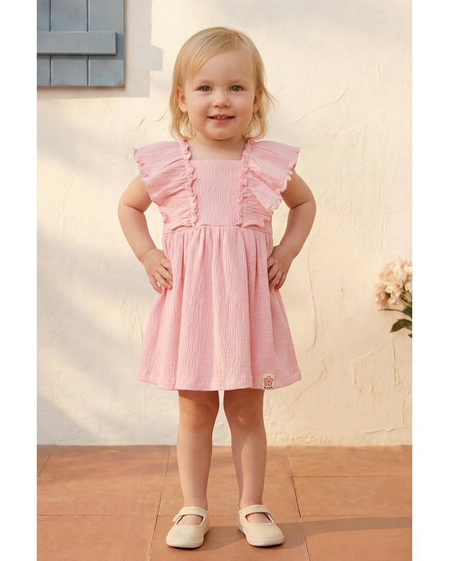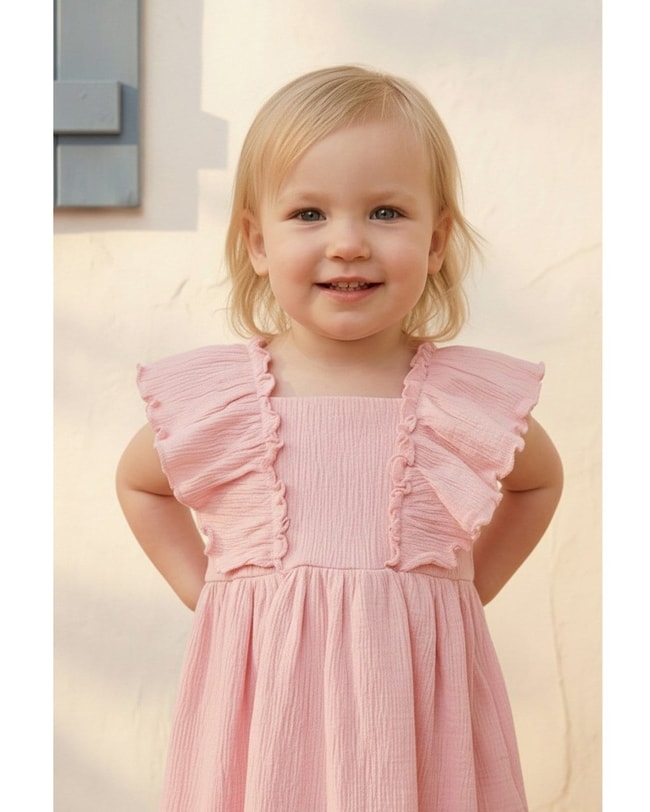 Kız Çocuk Pamuklu Pembe Müslin Elbise