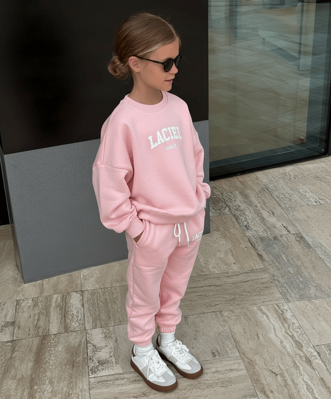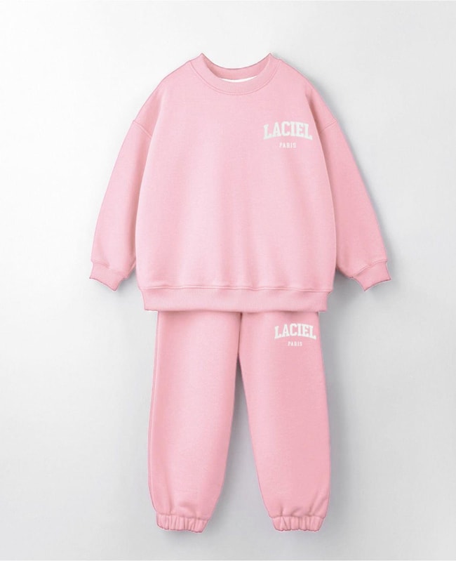 Kız Çocuk Pamuklu Pembe Sweatshirt Eşofman Alt-Üst Takım