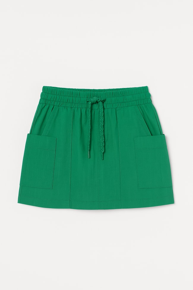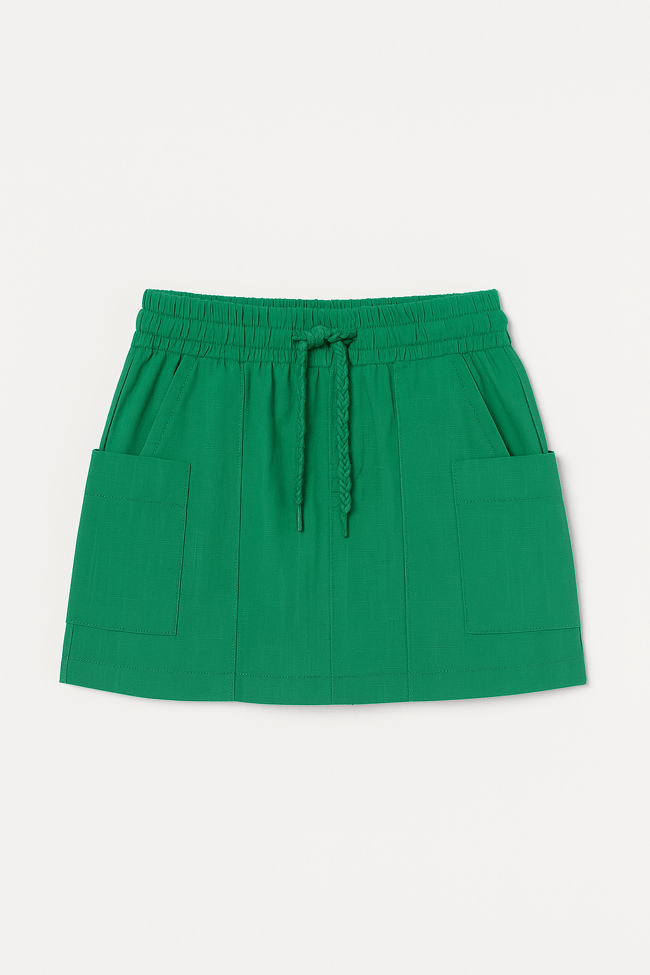 Kız Çocuk Pamuklu Yeşil Cepli Bağcıklı Etek - Rahat Yazlık Model