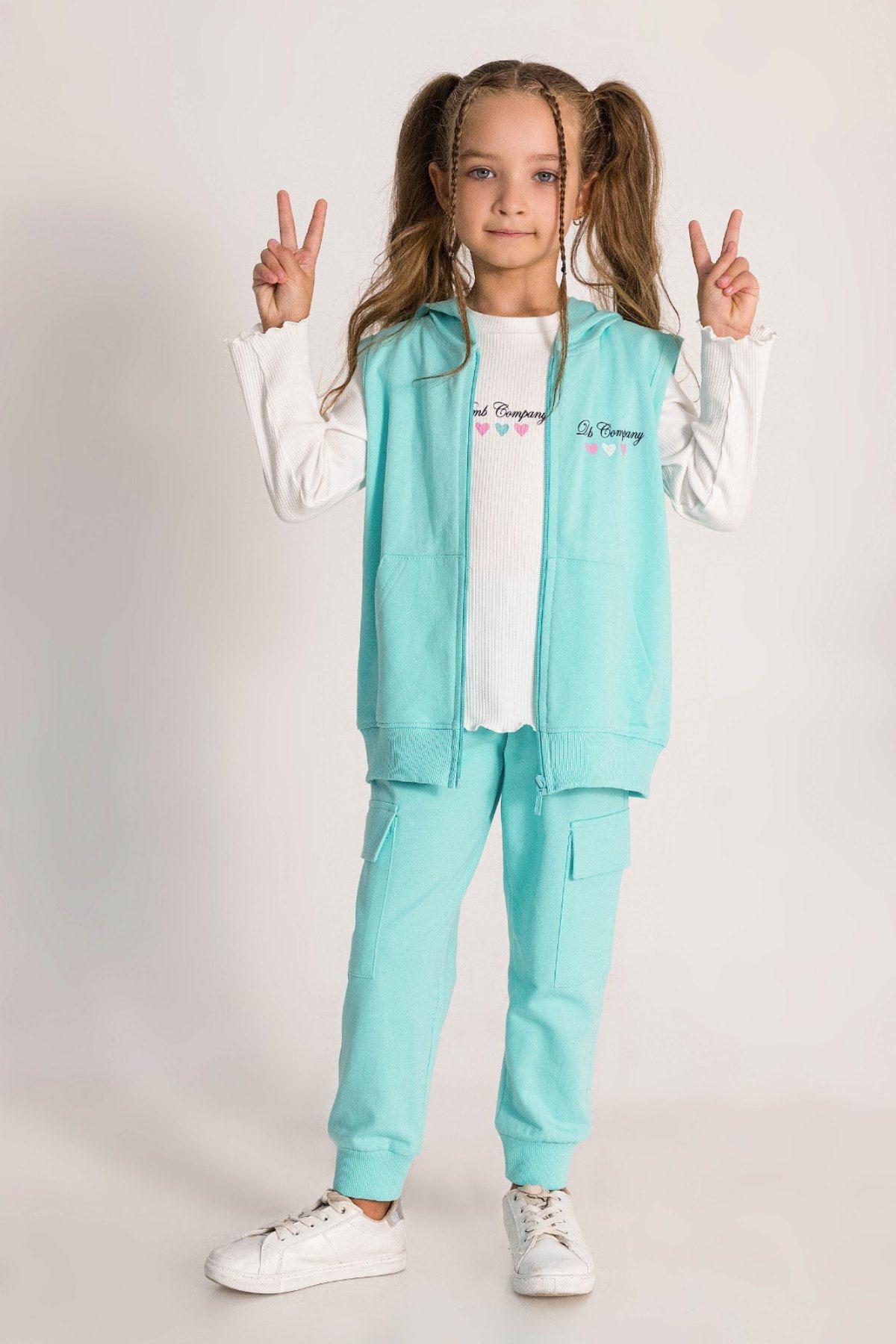 Kız çocukları için hem rahat hem de şık bir alternatif sunan bu mint yeşili takım, yelek ve eşofman altı kombininden oluşuyor. Kapüşonlu ve cepli tasarıma sahip fermuarlı yelek, modern ve spor bir görünüm sağlarken, eşofman altındaki kargo cepler hem işlevsel hem de trend bir detay katıyor.