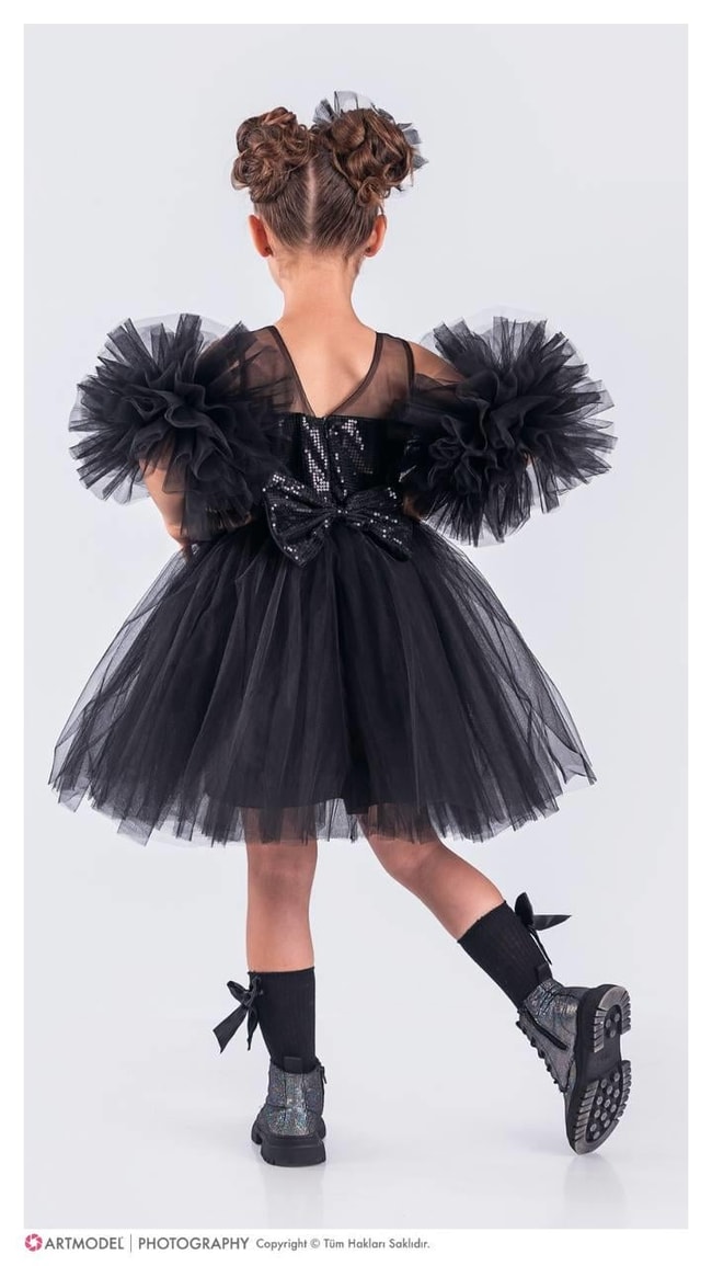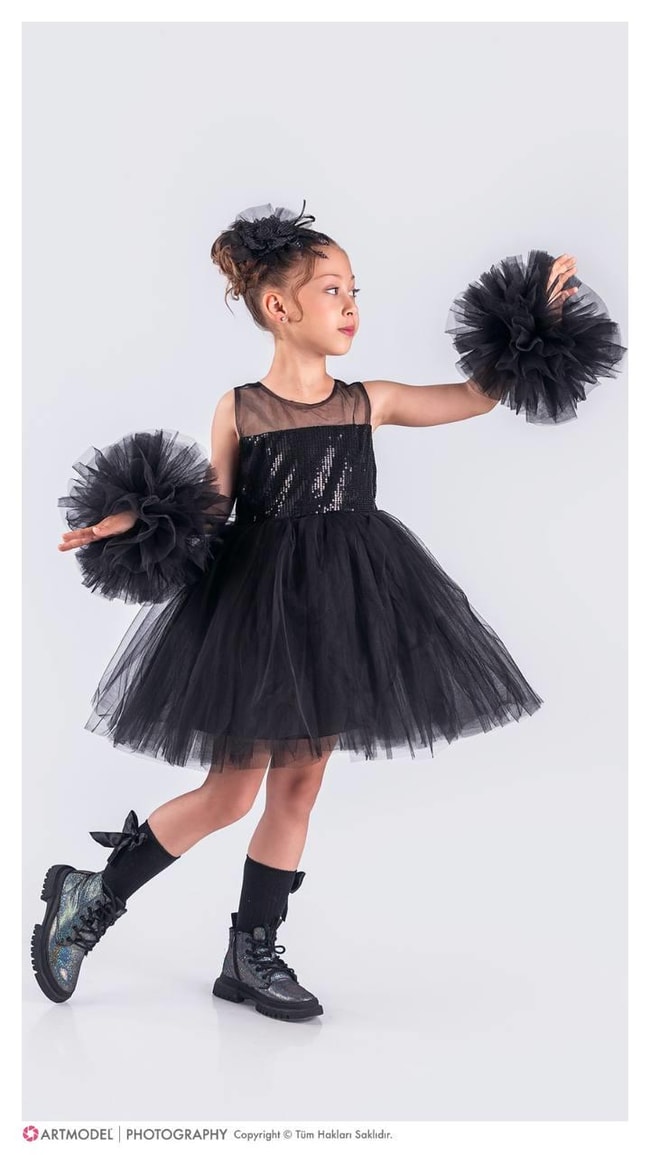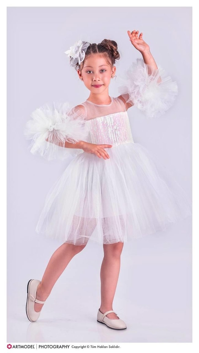 Kız Çocuk Pon Pon Kollu Tütü Etekli Elbise