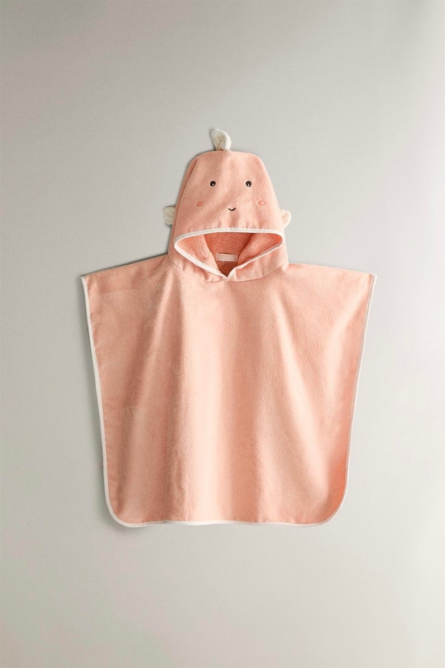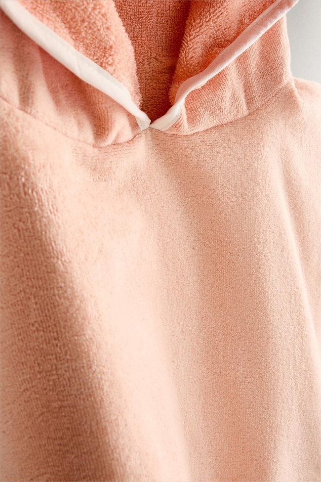 %100 pamuklu, kapüşonlu somon ponço havlu. Sevimli yüz detaylı, çocuklar için banyo ve plaj kullanıma uygun.