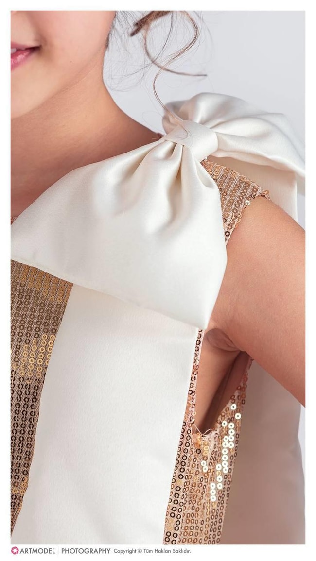 Pullu Fiyonk Detaylı Kız Çocuk Elbise Abiye