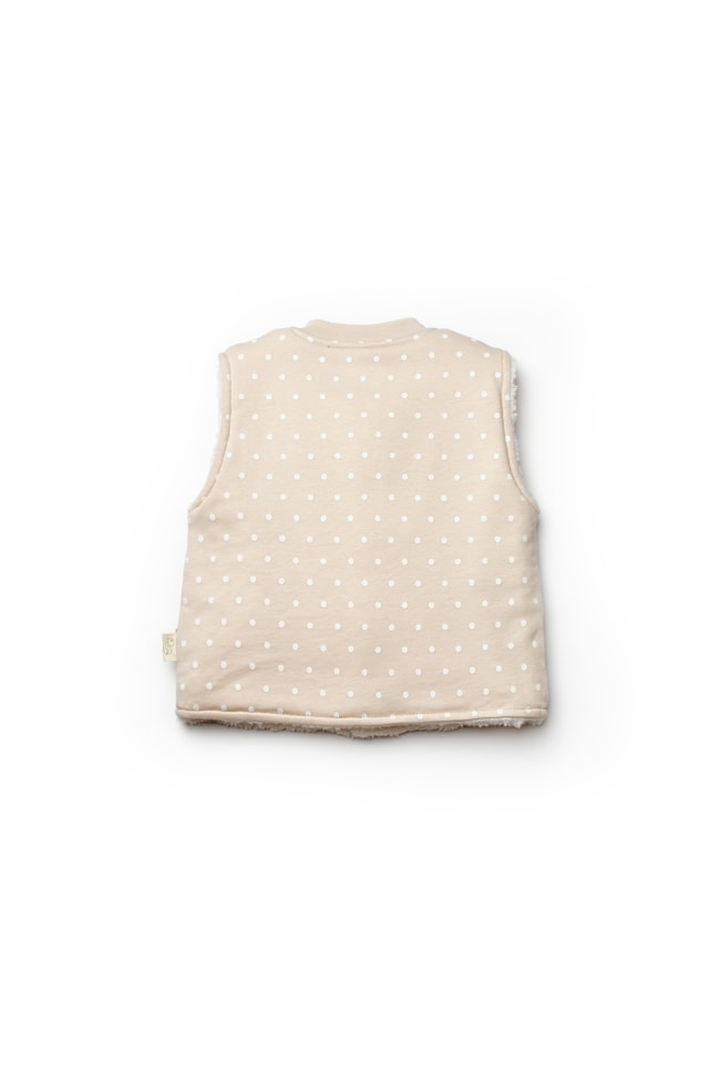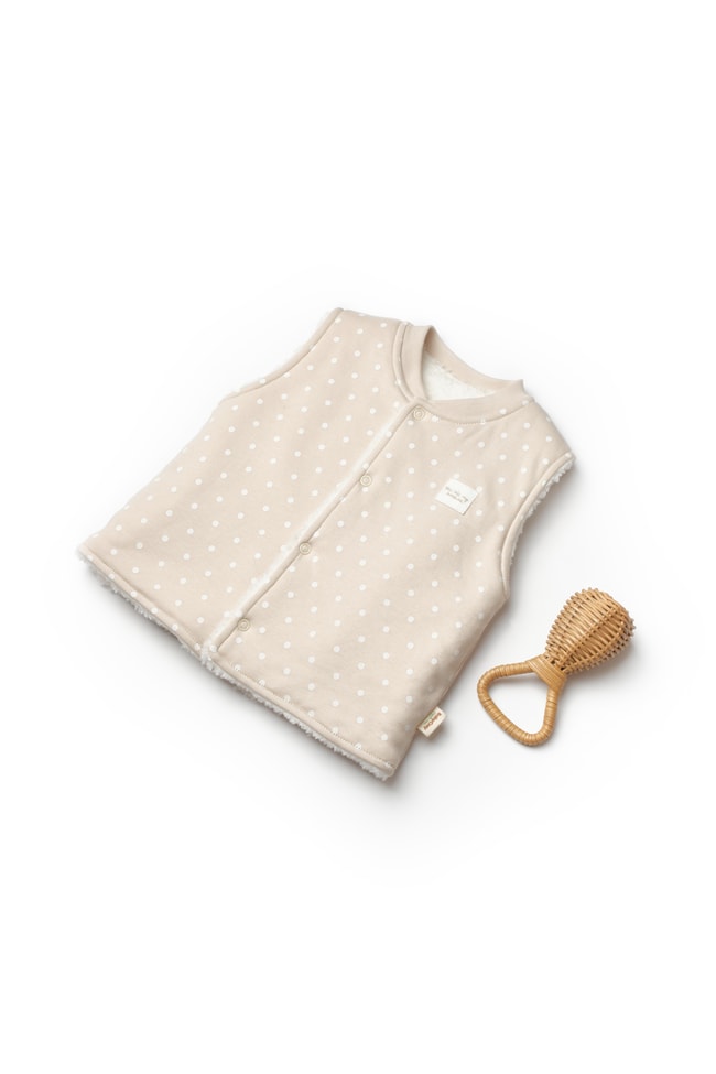 Miniklerin hassas cildi için özel olarak tasarlanan bu organik pamuklu yelek, yumuşacık dokusu ve nefes alan yapısıyla konforlu bir kullanım sunar. Dışı %100 organik pamuktan üretilmiş olan yeleğin iç kısmı ise sıcak tutan pelüş astarla kaplanmıştır. Pratik çıtçıtlı tasarımı sayesinde kolayca giydirilip çıkarılabilir.