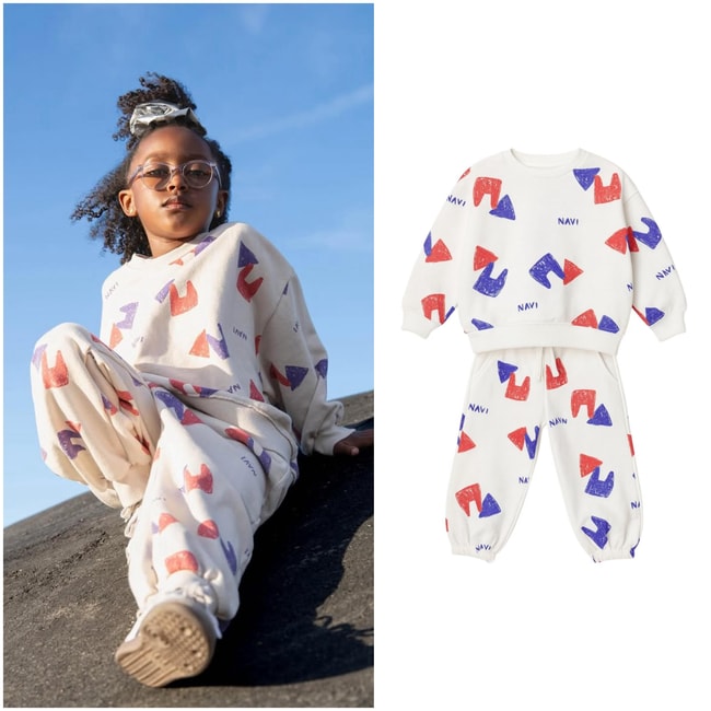 Erkek çocuklar için özel tasarlanan bu pamuklu takım, konfor ve tarzı bir araya getiriyor. Üst parçası bisiklet yaka ve uzun kollu sweatshirt formunda olup, kırmızı ve mavi NAVI desenleriyle enerjik bir görünüm kazandırıyor. Alt parça ise elastik bel yapısı ve paçaları lastikli eşofman tasarımıyla gün boyu rahat hareket etme imkânı sunuyor.