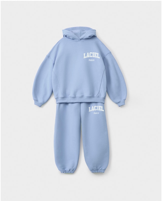 Çocukların günlük kullanımda rahatlığını ve stilini ön plana çıkaran Unisex Çocuk Pamuklu Mavi Laciel Baskılı Kapüşonlu Sweatshirt ve Eşofman Alt Takım, yumuşak pamuklu dokusuyla konfor sunar. Oversize kalıp sweatshirt, kapüşonlu tasarımı ve ön kısmındaki Laciel baskısı ile modern bir görünüm kazandırırken, kanguru cebi fonksiyonellik sağlar. Eşofman altı ise elastik bel yapısı ve lastikli paça detayları sayesinde hareket özgürlüğü verir.