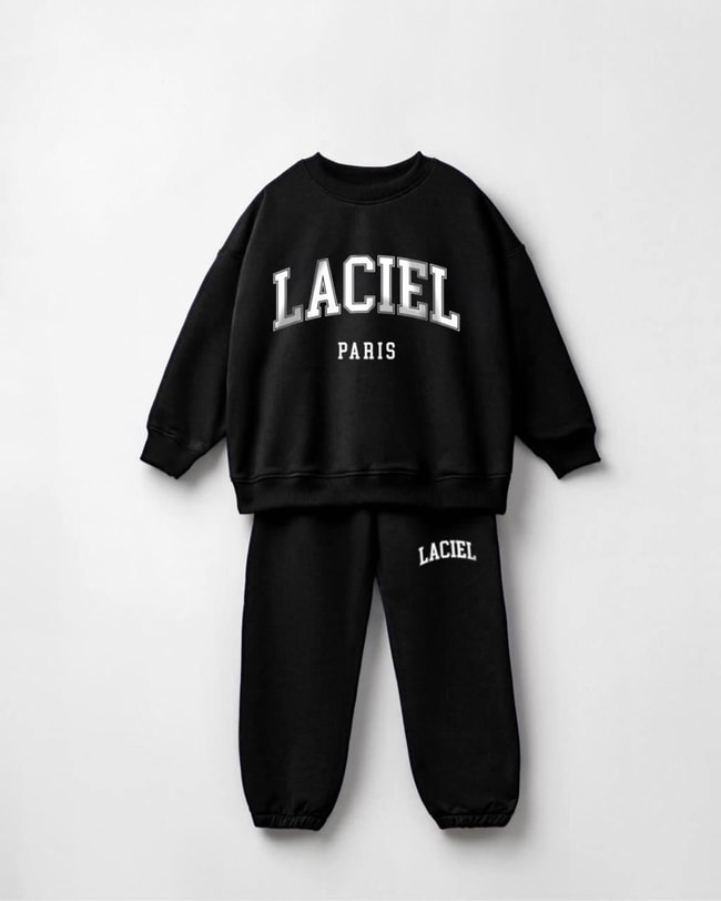 Unisex Çocuk Slogan Desenli Pamuklu Sweatshirt Eşofman Alt-Üst Takım
